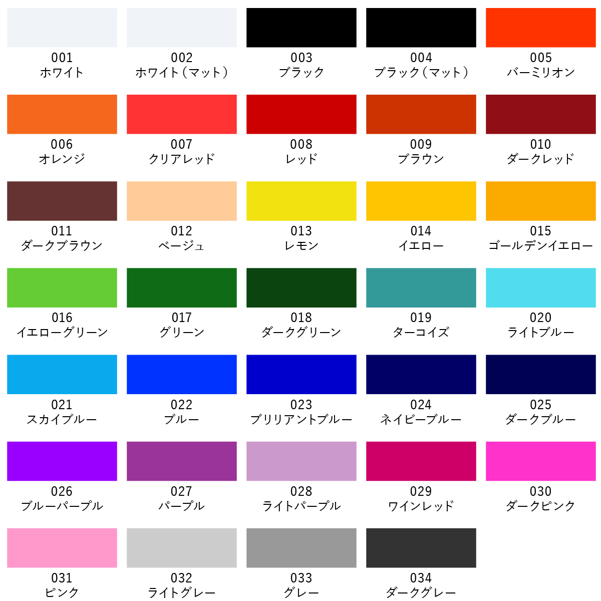 カッティングステッカー色見本